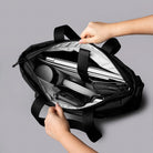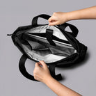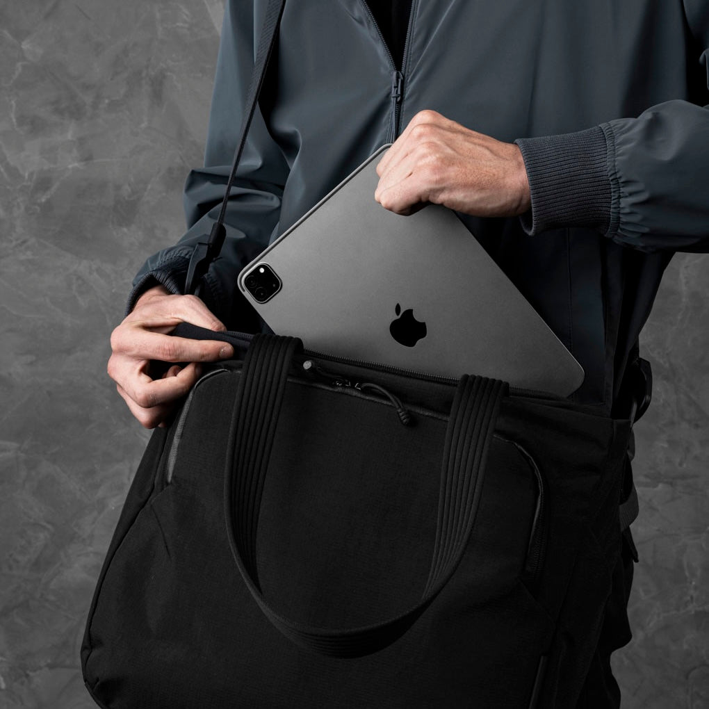 Det polstrede, fleeceforede laptop-sleeve kan rumme en 16” MacBook Pro. Hovedrummet har desuden flere indvendige lommer til opladere, drikkedunk, en tynd jakke el.lign. På forsiden findes en lettilgængelig lynlåslomme med indvendige lommer til organisering af skriveredskaber, nøgler og elektronik. Bær tasken i håndtagene på oversiden eller ved brug af den polstrede, aftagelige skulderstrop. En bagagestrop på bagsiden muliggør nem fastgørelse på en kuffert.