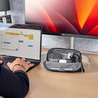 Denne kompakte skrivebordstaske opbevarer dine mest brugte skriveredskaber og tech accessories på en intuitiv og overskuelig måde. Lad det være slut med at rode rundt i tasken - Desk Pouch’ens praktiske, indvendige lommer gør det nemt at finde selv de mindste genstande på et øjeblik. Når tasken er lynet op, kan den forreste del foldes ned for bedre synlighed af indholdet. Den indvendige skillevæg holder dine ting adskilt og er udstyret med henholdsvis elastiske stropper og små trådnetlommer på siderne.