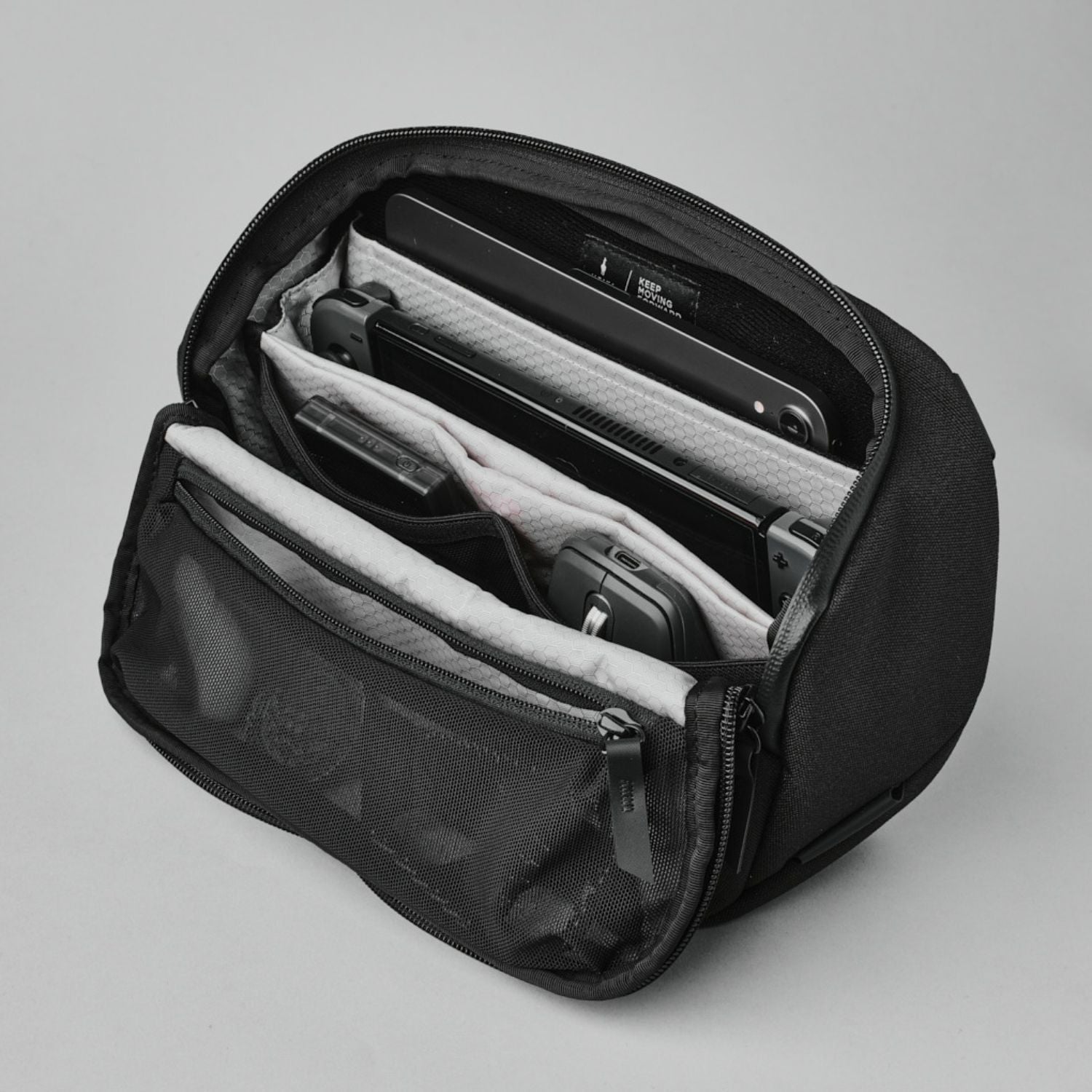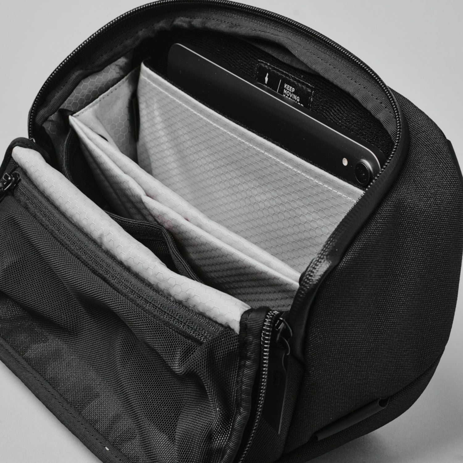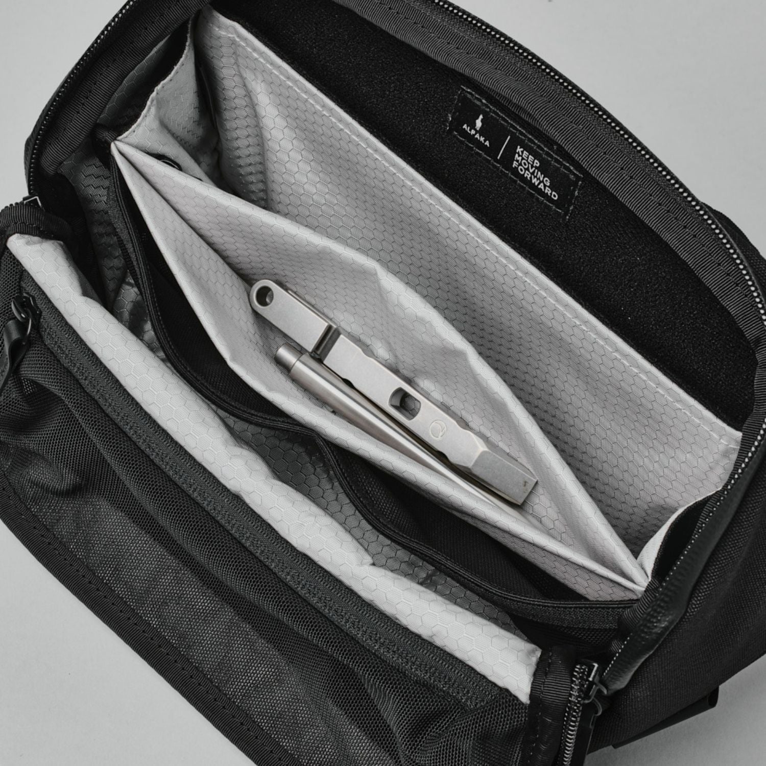 Lynlåsåbningen til hovedrummet er intuitivt placeret på oversiden, og det U-formede design giver nem adgang til indholdet. Det gælder også en indvendig lomme øverst i hovedrummet, som er ideel til opbevaring af batterier, SD-kort eller andet småt kameratilbehør.
